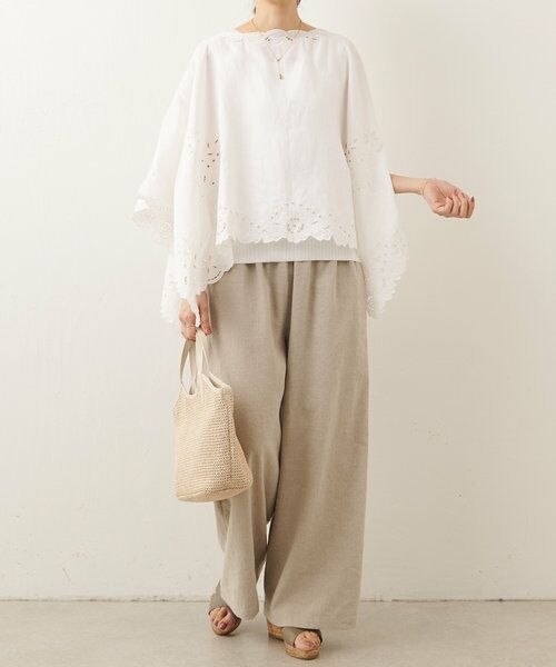美品⭐️ビアズリー ポンチョ シャツ ブラウス フリー ゆったりシルエット パネル刺繍リネンポンチョ (シャツ・ブラウス)|BEARDSLEY