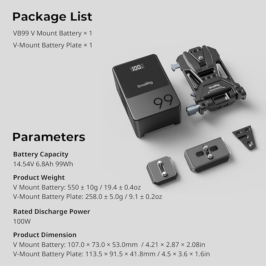 SmallRig Vマウントバッテリー VB99 99Wh / 6800mAh Amazon.com: SMALLRIG V Mount Battery VB99, 99Wh / 6800mAh V